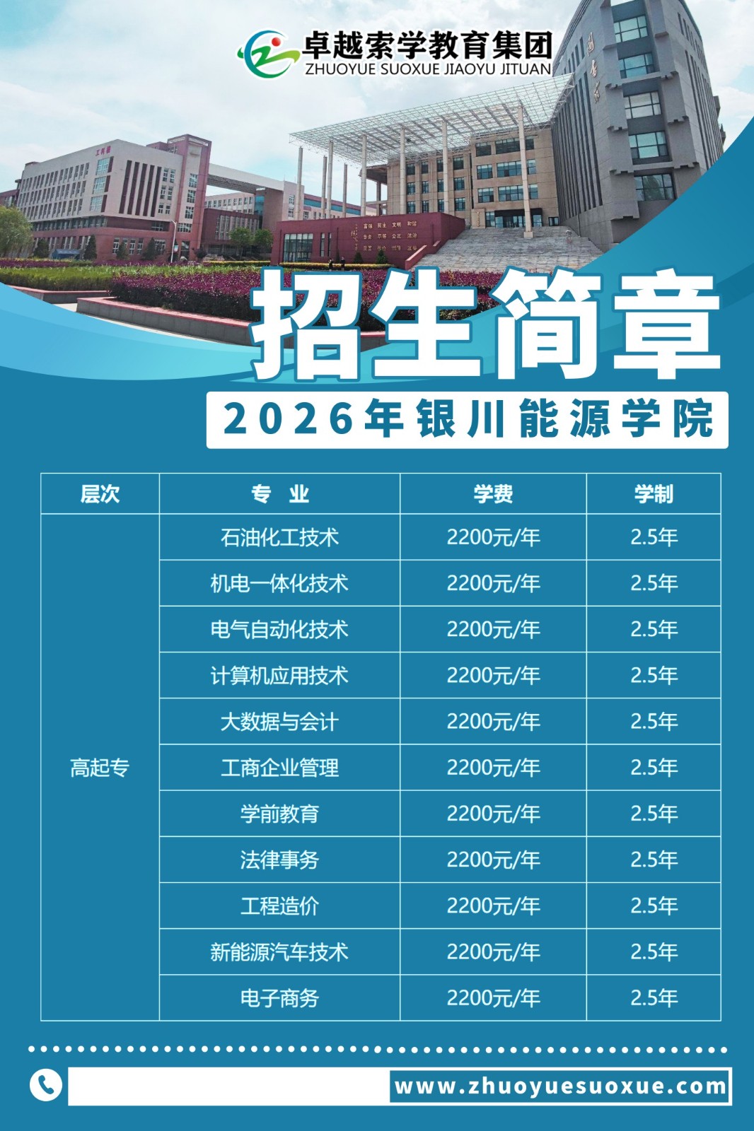 银川能源学院是经教育部批准设立的民办普通本科高校,1999 年建校。2004 年,由宁夏回族自治区人民政府正式批准设校定名为“银川科技职业学院”。2012 年,经教育部批准升格为普通本科院校并更名为“银川能源学院”。2016 年,获学士学位授予权。2019 年,举办...